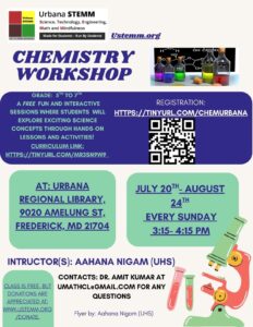 Students between 5th grade to 7th grades are invited to join a chemistry workshop, a fun session where students will learn different exciting science concepts through various activities.